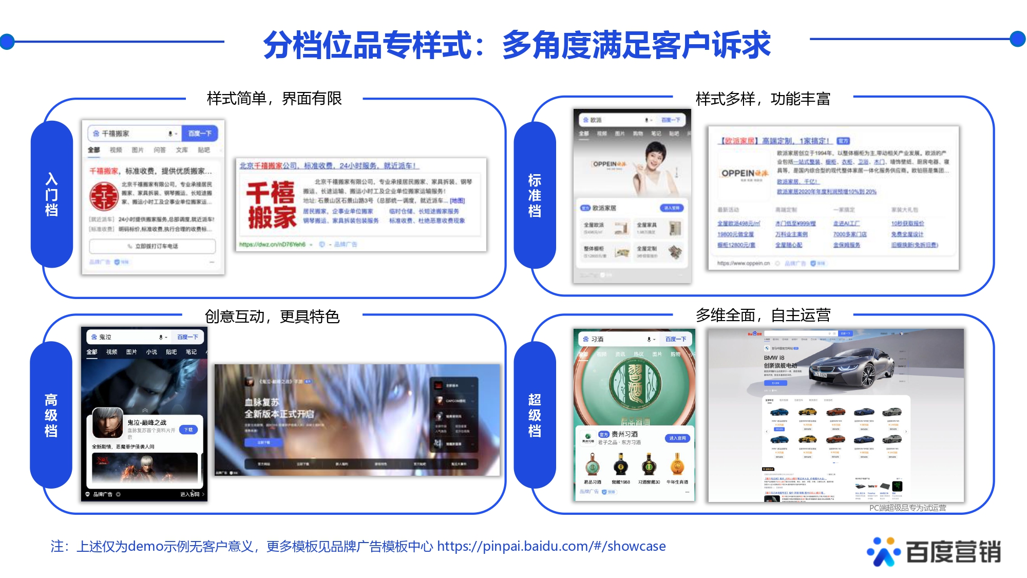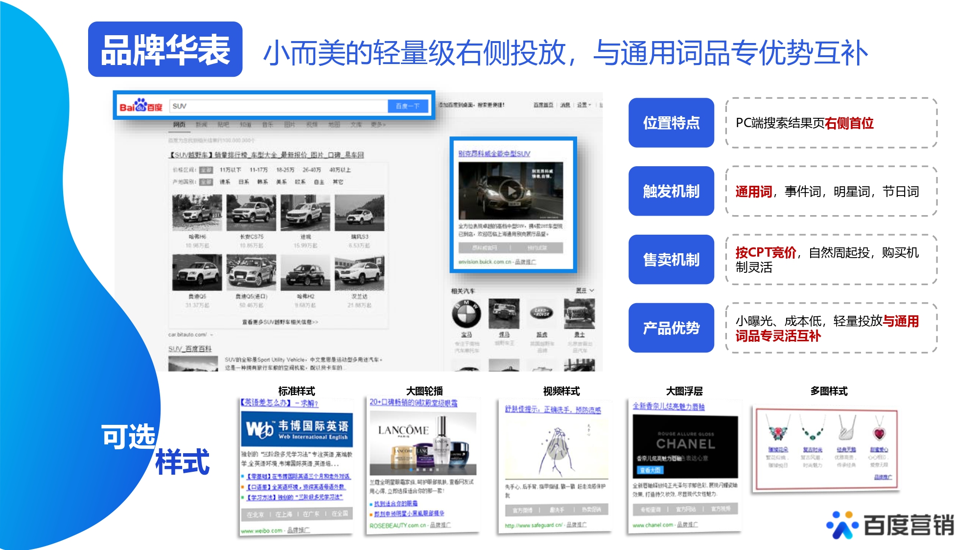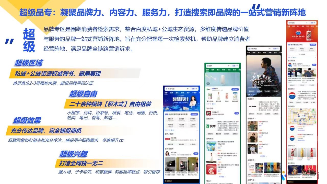 百度品牌專(zhuān)區,位于百度搜索結果首位,以超大黃金首屏展示位置,以文字...