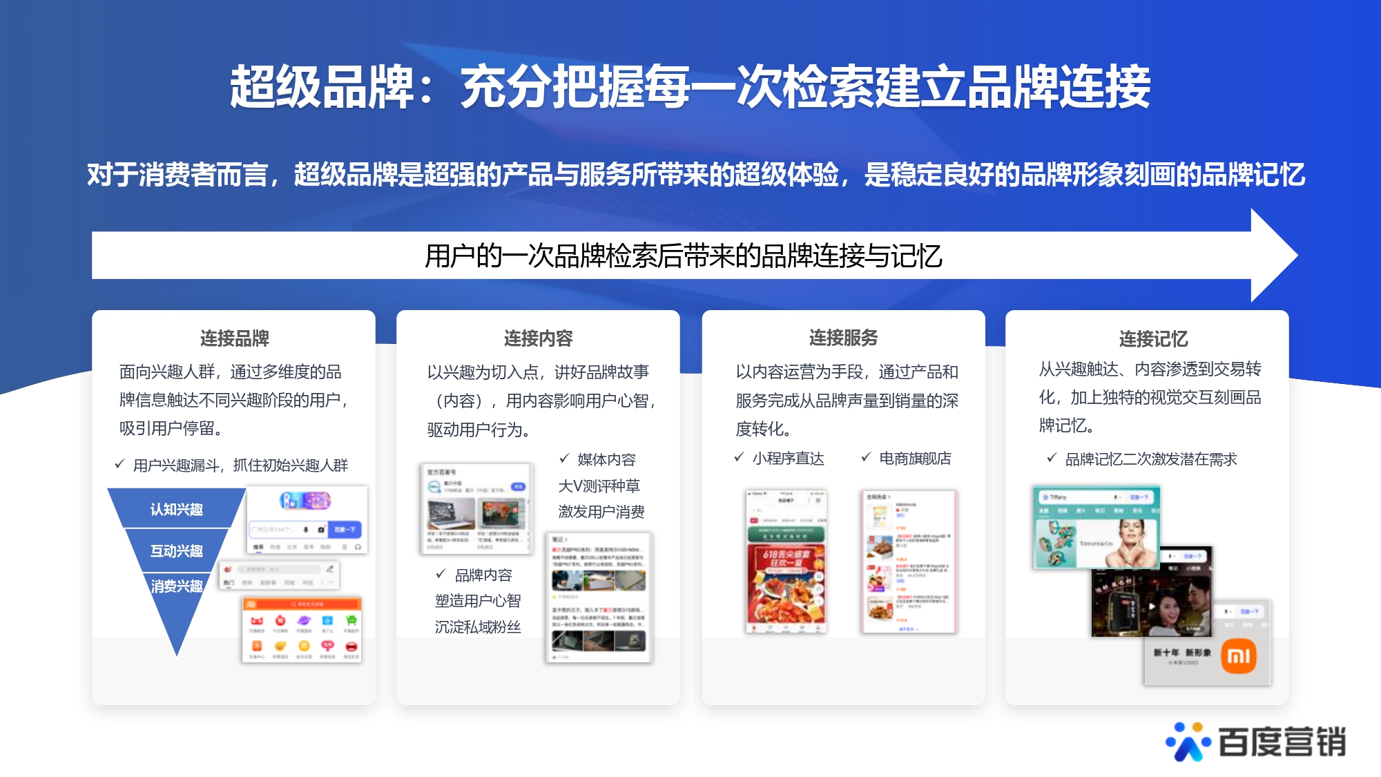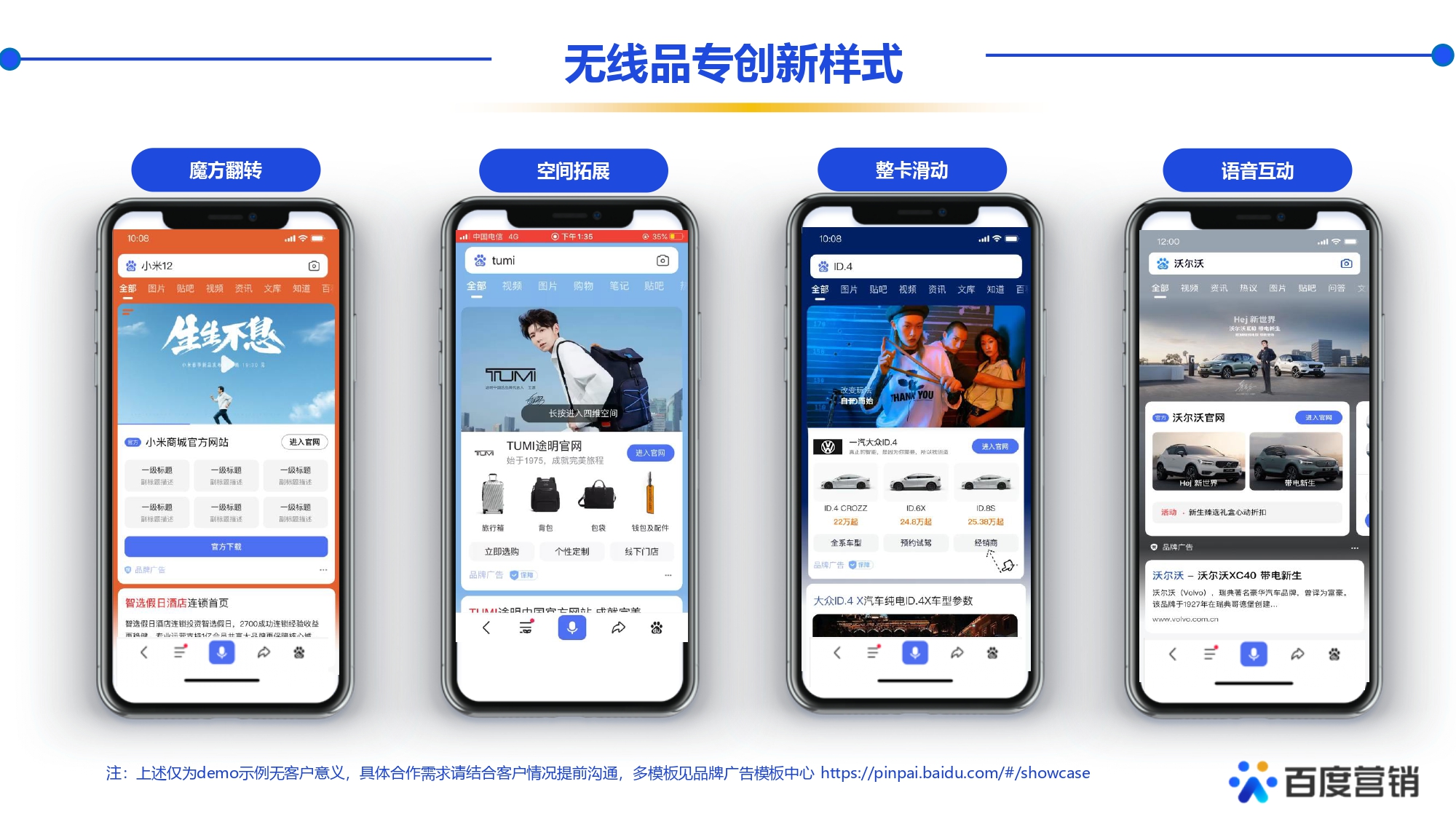 品牌推廣基于百度搜索引擎,通過(guò)品牌詞觸發(fā),提供全場(chǎng)景一站式品牌營(yíng)銷(xiāo)服務(wù)陣地,以創(chuàng )新的樣式和視覺(jué)交互吸引品牌認知階段的搜索用戶(hù),加深用戶(hù)對客戶(hù)品牌的第一印象,進(jìn)而引導用戶(hù)形成對品牌的好感和忠誠度。