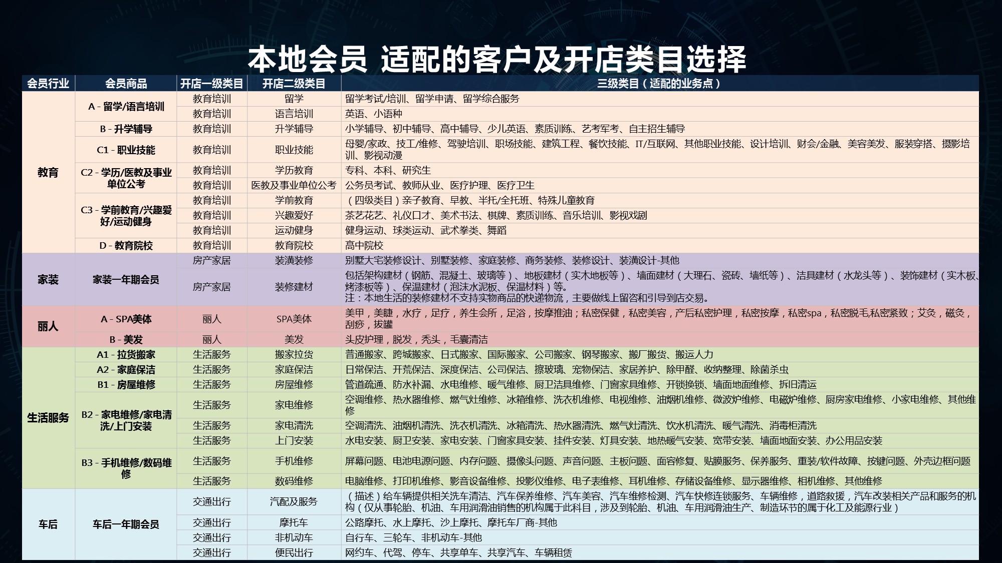 本地會(huì )員是面對中小商家的普惠型獲客解決方案,用海量專(zhuān)屬流量扶持本地商家成長(cháng),面向五大品類(lèi)開(kāi)放會(huì )員產(chǎn)品售賣(mài),分別為:生活服務(wù)、教育培訓、房產(chǎn)家居、汽車(chē)服務(wù)和麗人。