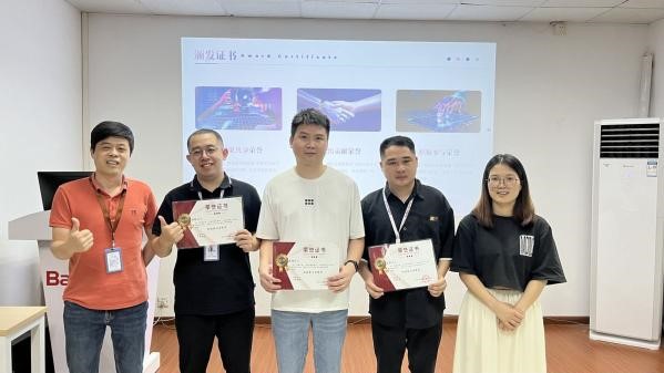 會(huì )議的最后是頒獎環(huán)節。公司設置了三個(gè)獎項:成果共享獎、杰出貢獻獎和積極參與獎。除了為獲獎?wù)哳C發(fā)榮譽(yù)證書(shū)外,公司還特別準備了精心挑選的小禮品,以感謝他們的辛勤付出。這些獎項分別由公司領(lǐng)導完成頒獎,并與獲獎?wù)吆嫌傲裟?。這一環(huán)節不僅是對大家努力的肯定,更是對未來(lái)工作的鼓勵和期待。